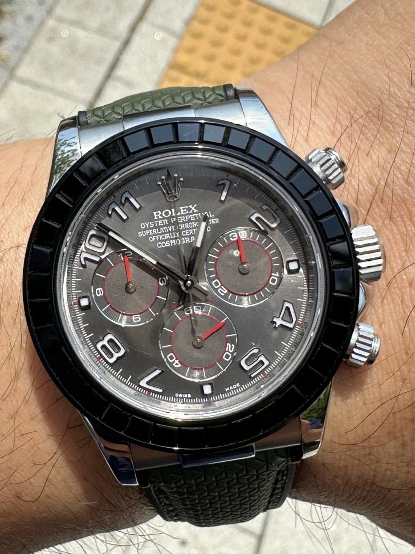 데이토나용 올블랙 모이사나이트 베젤 장착샷