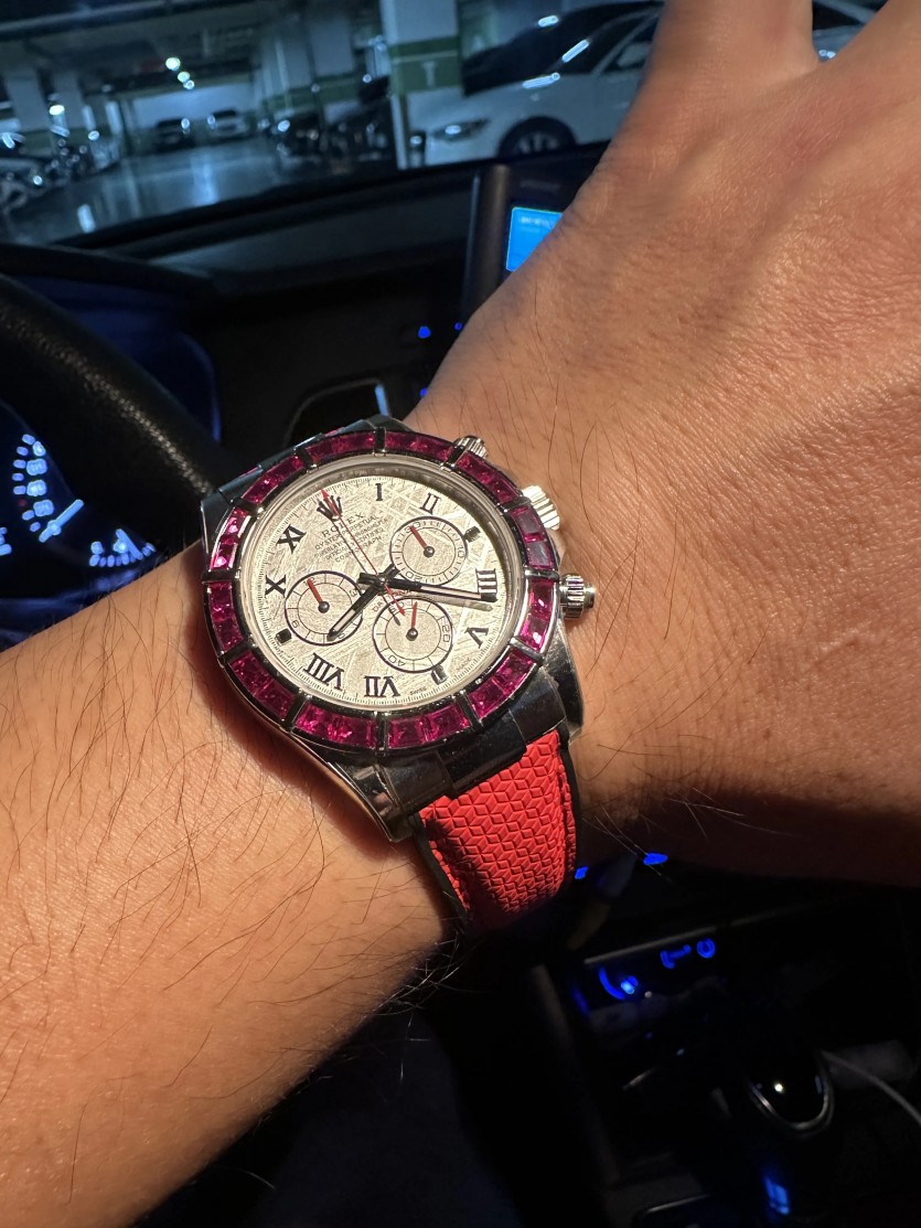 데이토나 운석(Meteorite) 다이얼 로만인덱스+커스텀핸즈+모이사나이트 베젤 장착샷