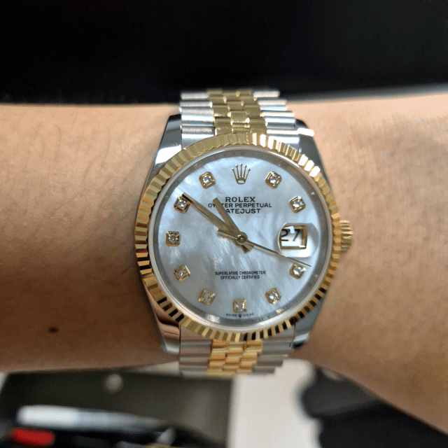 QP 데이저스트 36mm 자개판 자개 다이얼 질감, 색감 너무 예쁩니다.베젤 각이나 글라스 쨍함도 수준 매우 높고... 더 이상 클린, VS를 선택할 이유..