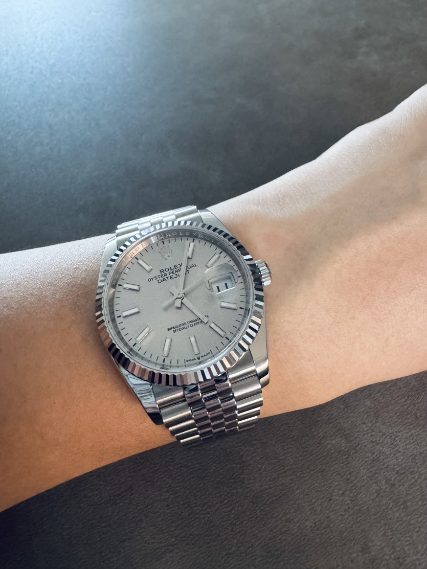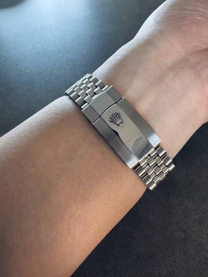 큐피팩토리 롤렉스 데이저스트 36mm 실버 바인덱스는 첫인상부터 고급스러움이 느껴집니다. 실버 다이얼과 바 인덱스가 깔끔하면서도 세련된 분위기를 주고, 주빌리 브레슬릿 착용감도 부드럽습니다. 마감과 디테일 완성도가 높아 실물 만족도가 상당합니다.