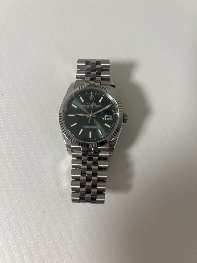 고대하던 데젓 36 민트그린 받았는데 역시 가성비 킹갓이에요. 다만 아쉬운 부분이 처음 받자마자 버클 크라운이 떨어져있어서 순접으로 다시 붙였다는 점이네요 ㅠ 나머진 대만족 입니다
