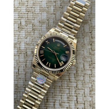 • QP공장 롤렉스 데이데이트40 옐로우골드 텅스텐 그린옴브레로만다이얼 스틸브레이슬릿 208~211g로