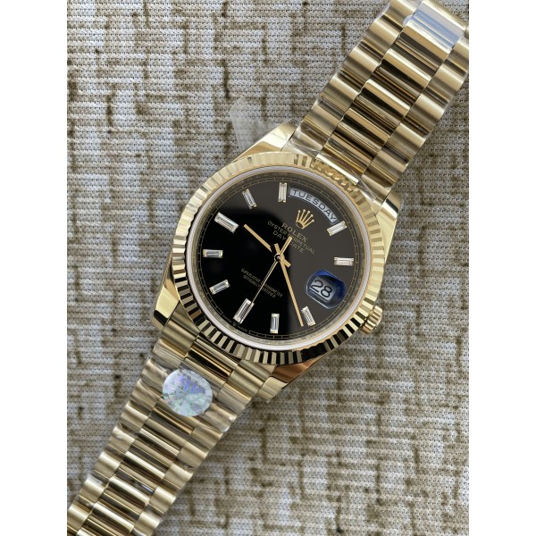 • QP공장 롤렉스 데이데이트40 옐로우골드 텅스텐 블랙바게트다이얼 스틸브레이슬릿 208~211g로