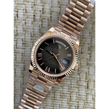 • QP공장 롤렉스 데이데이트40 로즈골드 텅스텐 그레이옴브레로만다이얼