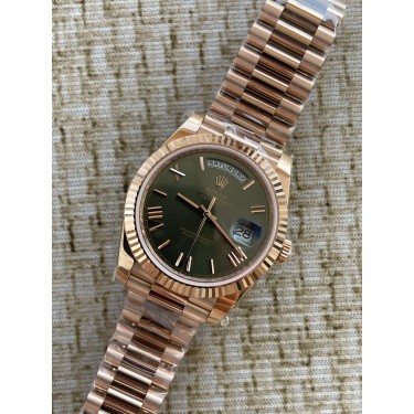 • QP공장 롤렉스 데이데이트40 로즈골드 텅스텐 그린로만다이얼